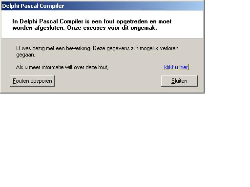 Some more info: I downloaded the latest version of JVCL and installed it as I do normally, again it stopped at the same point as before. But now I tried a clean install for the D7 version. I first modified the install.bat (changed newest --> d7) and then installed again. This time it installed without any problems. Could it be possible the the problem is created by the fact that the installer and other files are compiled with the d9 compiler? I think that the only thing I changed since this problems occured was the sequence in which I installed the D2005 version and d7 version. Don't know if this helps. |