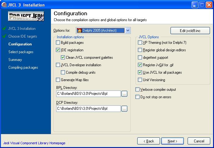 | Description | I have jcl 1.96 installed in non-standart path: C:\Borland\BDS\3.0\Projects\Bpl In BDS IDE macros $(BDSPROJECTDIR) redeclared as "$(BDS)\Projects". But JVCL installer cant recognize it and assumes what JCL is not installed (look at screenshot). JVCL 3.0 has not this problem. | ||||