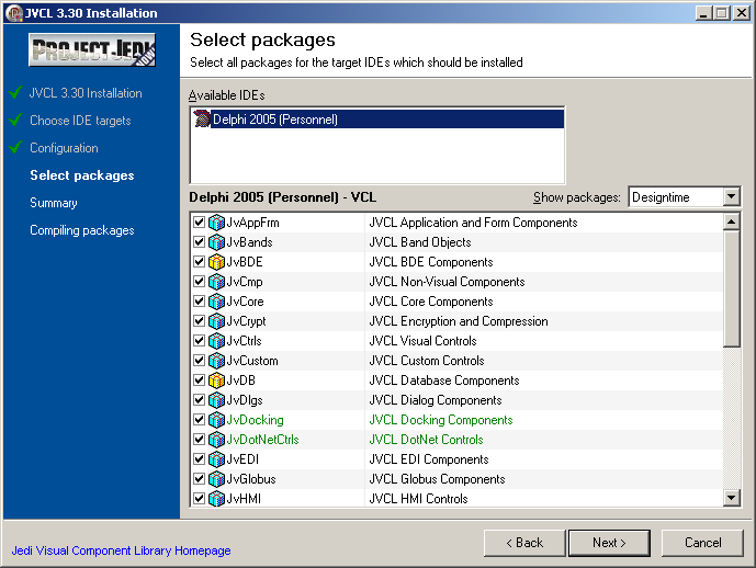 DescriptionThe installation of the JVCL fails on personal SKU of Delphi because it doesn't have support for databases. It would be great to disable these packages (they are all checked when a "new installation" is started)