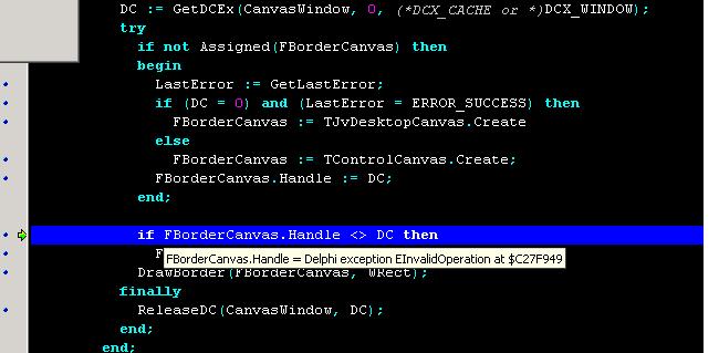 Descriptionin run\JvMenus.pas after change on revision 11592, appears message "Canvas does not allow drawing"