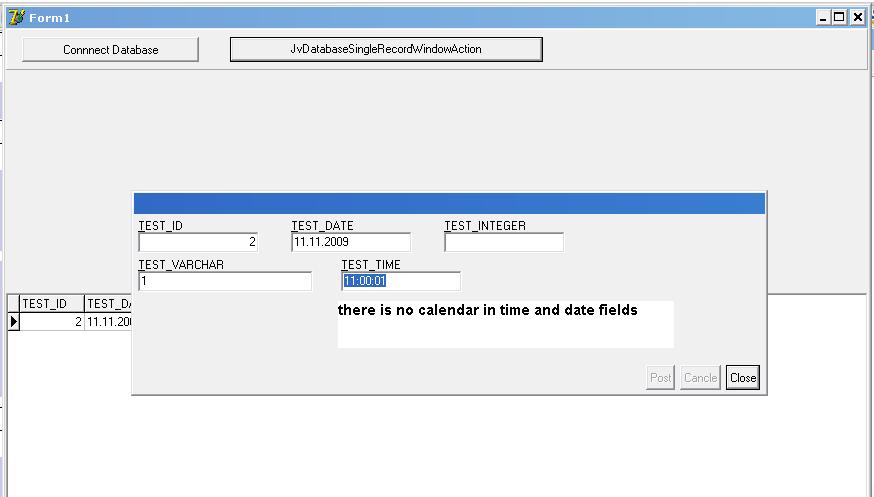 When use JvDatabaseSingleRecordWindowAction1 from Database Actions , time fields never change after post. All other fields can change but time fields can't change.