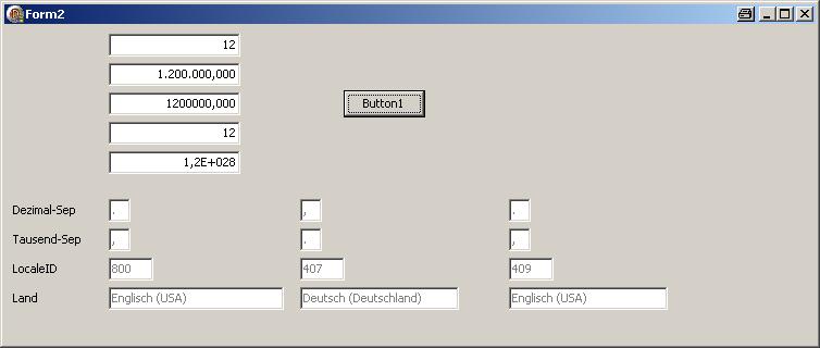 I can confirm the bug. My PC is a Windows 7 English (U.S.) installation, so GetLocalChar(LOCALE_SYSTEM_DEFAULT,....) returns English (U.S.) settings. I set my per-user locale to Portuguese (Brazil) while testing an internationalization problem for one of our customers, so the LOCALE_USER_DEFAULT and GetThreadLocale return Portuguese (Brazil) settings. (In response to your earlier question, this change was NOT made while the program was running.) The result is that, as SteffenSchm reported, TJvValidateEdit sometimes tries to use commas and sometimes tries to use decimals. In my sample project, if I assign a value of 500 to JvValidateEdit1->Value, it's formatted as 500,0000, then the comma is discarded because it doesn't match LOCALE_SYSTEM_DEFAULT, so JvValidateEdit1->Value ends up being 5000000,0000. |