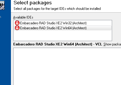 Afterall u are not required to use installer U can spend some time to learn Delphi ways - manually update search and output paths for IDE settings, manually open and compile all runtime DPK's, then manually open and compile and install all designtime DPK's That way you'd be in full control of their settings and would simply fix attempt to use 32-bit DCU/DCP files for 64-bit DPK target |