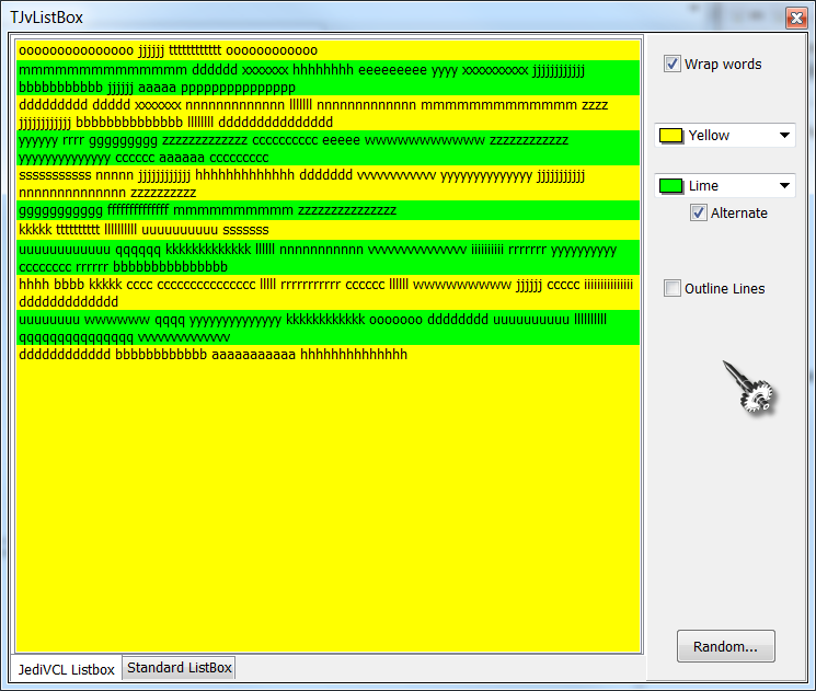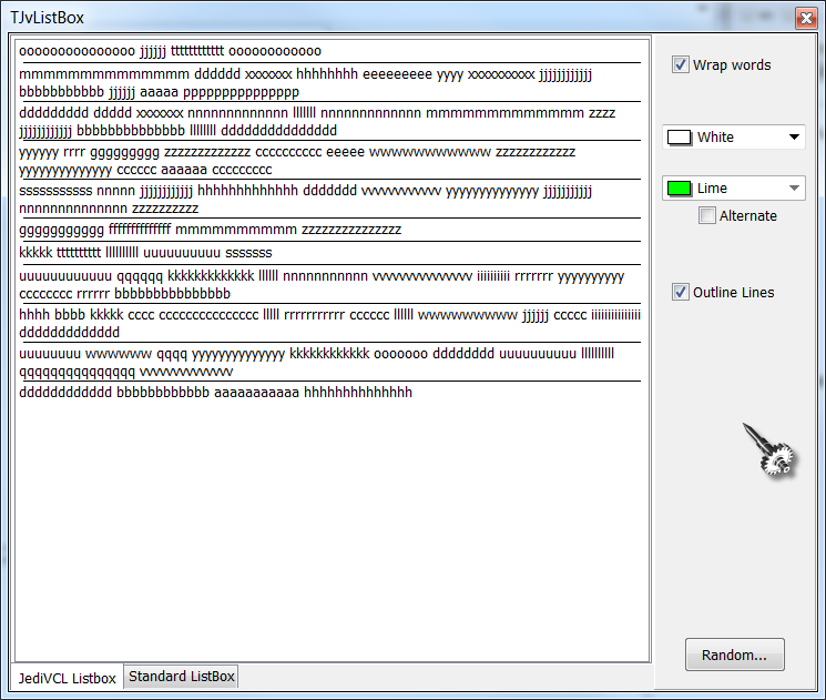| Description | 1) there was no demo 2) it did not properly resized in runtime, when MultiLine (word wrap) was enabled 3) there was no way to visually separate items from one another, like in StringGrid or whatever | ||||