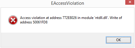 | Description | When running/install JVCLInstall.exe i allways get this message: "Access violation at Adress 772E8026 in module 'ntdll.dll'. Write of address 50061FD8". And it blocks here! It started 5/10 days ago. Can you help Best Regards | ||||