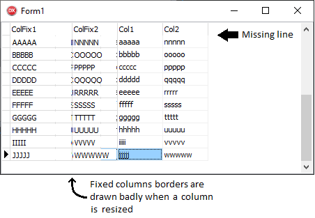 | Description | I have two problems with the appearance of the grid: 1) The line under the title is no longer drawn 2) if I set columns to be fixed their borders are not drawn correctly when I resize a column | ||||