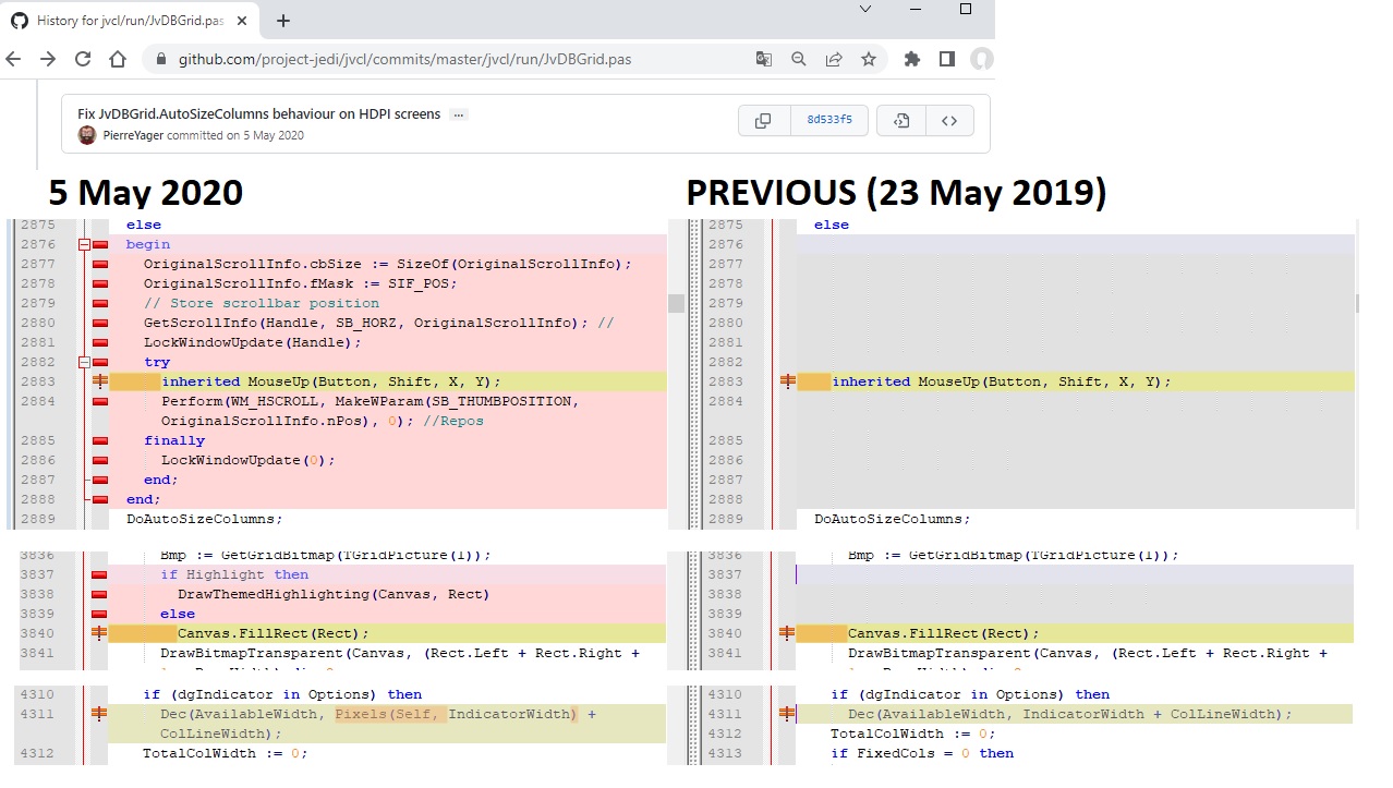 The problem started from the update of file JvDBGrid.pas, on 5 May 2020. See attached picture for details. |