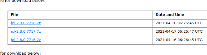 | Description | Daily zips for JCL is not updated since last April in http://jcl.sourceforge.net/daily/ | ||||
