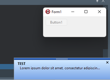 | Steps To Reproduce | - Create a new VCL Application - Add a new TJVDesktopAlert - Add a new Button - Set a value for MessageText that is too long for the alert - Add an onclick on the button and use the TJVDesktopAlert.Execute in the handler - Run the application and click the button - The text is being cut off. | ||||