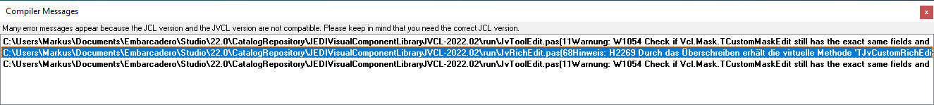 | Steps To Reproduce | 1. Install JVCL 2. Notice the little additional window popping up showing these warnings | ||||